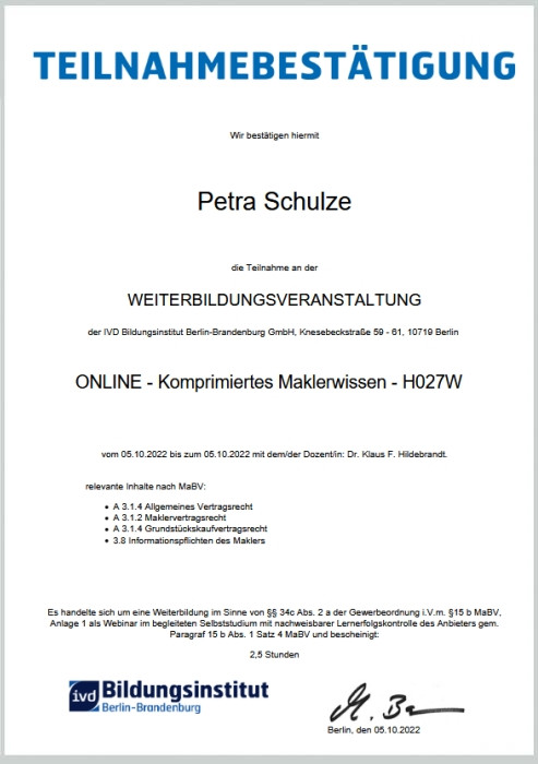 Maklerrecht - Weiterbildung