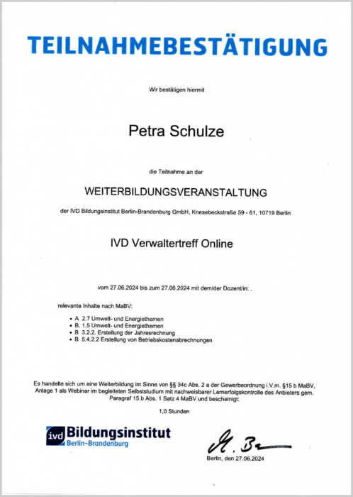 Weiterbildung IVD, 27.6.2024