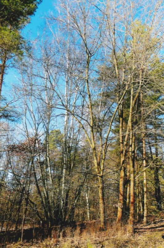 Hier haben viele Menschen ein neues Haus unter alten Bäumen gebaut.