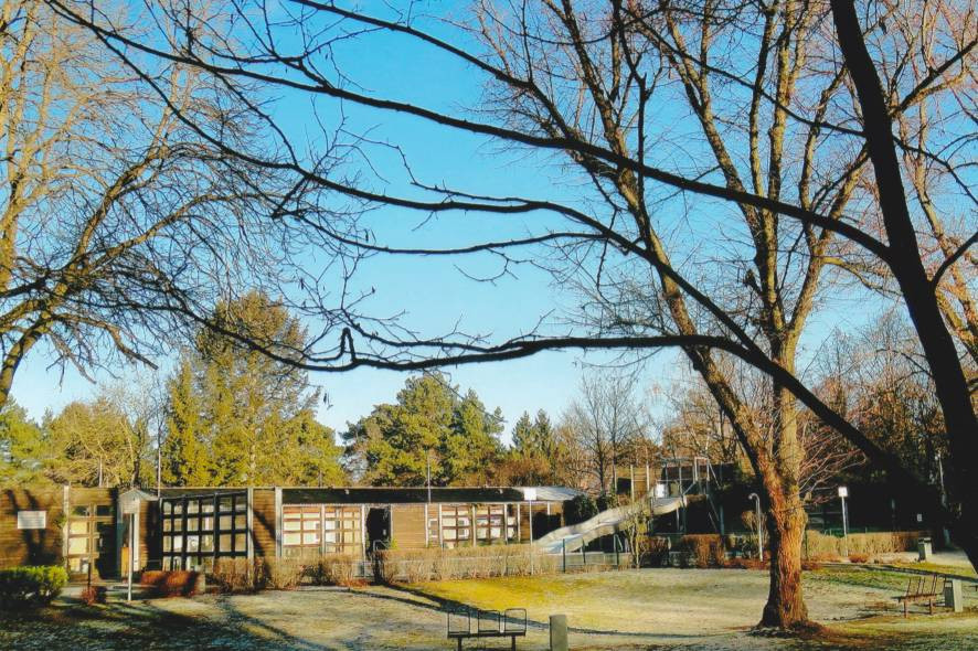 Auch Kindergärten befinden sich hier unter den alten Bäumen, wie die Kita „Unter den Kiefern“ oder der Waldkindergarten. Dieser Kindergarten ist ganz auf die Besonderheit der Falkenhagener Alpen ausgerichtet. Er heißt nicht nur Waldkindergarten, der ist auch einer. Die Kinder sind bei jedem Wetter draußen. So sind sie auf sandigen Dünen unterwegs, spielen zwischen den Kiefern oder klettern auf dem Scheinwerferberg, der ist mit 50 Metern Falkensees höchste Erhebung.