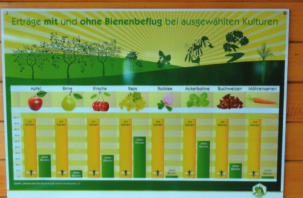Anschaulich wird hier über die Honigbiene und deren Beitrag zur Bestäubung von Pflanzen und somit wertvollen Nutzen zur Erzeugung von Obst und landwirtschaftlichen Produkten informiert.